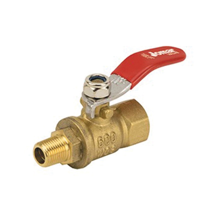 Jomar Valve® 2-Piece Full-Port Mini Ball Valve, Series: T-83C, Nominal Size: 1/8 in, Connection Type: FIP x MIP, Actuator Type: Lever, Material Construction: Brass, 1.9 in Length, 600 psi