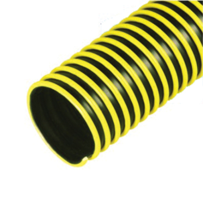 Kanaflex® 660YD Heavy-Duty Ducting Hose is built for rigorous applications requiring durability, visibility, and abrasion resistance. With a smooth EPDM rubber bore for efficient airflow and a "safety yellow" polyethylene helix, it ensures superior abrasion resistance, making it ideal for dragging applications. The 100% rubber sidewall provides enhanced durability, while its smooth interior and corrugated exterior support flexible handling. Rated at 4 PSI and withstanding temperatures from -40°F to 140°F, this hose is perfect for duct cleaning, commercial leaf and grass collection, cement dust recovery, and grain auger downspouts.