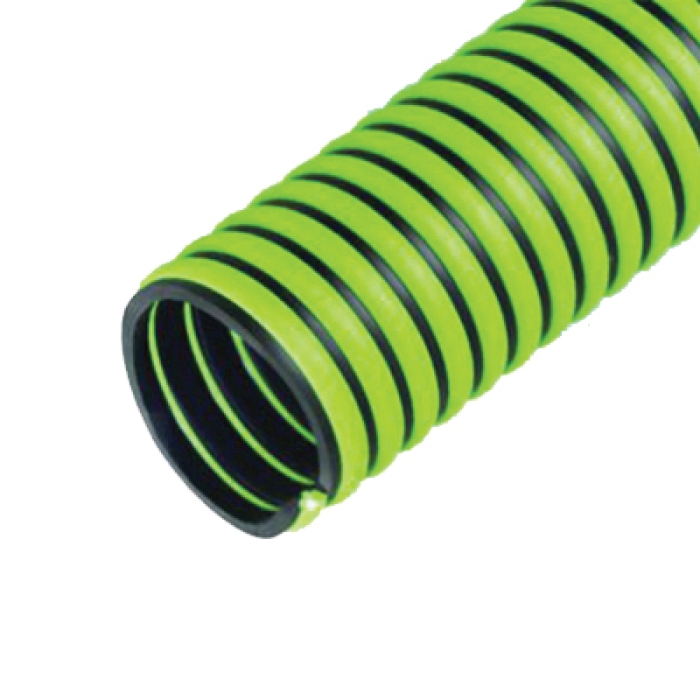 Kanaflex® KanaChem 300 All Weather Heavy-Duty Suction and Discharge Hose, Nominal Size: 6 in, 6.9 in OD, 6 in ID, 1 ft Length, 23 psi, Material Construction: EPDM, Construction: Polyethylene Helix, Smooth Bore, Corrugated OD, Green, 20 in Bend Radius, Resistance Properties: Agricultural Chemicals, -40 deg F Low, 140 deg F High