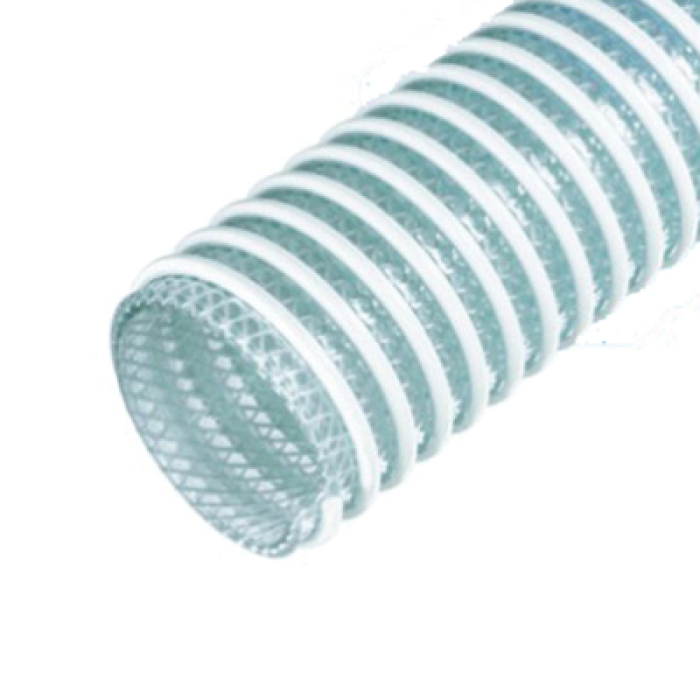 Kanaflex® KLFW is a heavy-duty suction and discharge hose designed for food-grade applications, including bottling, wine making, canning, dairy, brewing, and other liquid food processes. Made from flexible PVC with a rigid PVC helix and synthetic braiding, it offers excellent durability and flexibility for both suction and discharge needs. The clear sidewall allows for visual monitoring of material flow, and the external helix facilitates easy dragging. Rated to 110 PSI and operating in temperatures from -40°F to 140°F, this lightweight hose is ideal for demanding food and beverage transfer applications.