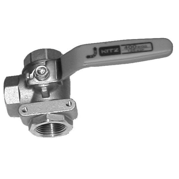 KITZ 2-Piece 3-Way L-Port Ball Valve, Series: 54P, Nominal Size: 1-1/2 in, Connection Type: FNPT, Actuator Type: Lever, Material Construction: C37700 Forged Brass, Forged Brass Ball, K-Metal Stem, PTFE Seat Trim, FPM Seal, Finish: Chrome-Plated, 3.94 in Length, 2.56 in Height, 300 deg F, 400 psi