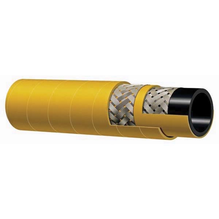 Kuriyama Alfagomma® High-Temperature Air Hose, Series: T142AK, Nominal Size: 2 in, 2.52 in OD, 2 in ID, 1 ft Length, 600 psi, Material Construction: NBR, NBR/SBR Cover, Construction: High-Tensile Steel Wire Braids, Yellow, 10 in Bend Radius, Resistance Properties: Abrasion, Flame, Hydrocarbon, Oil, Ozone, -40 deg F Low, 248 deg F High