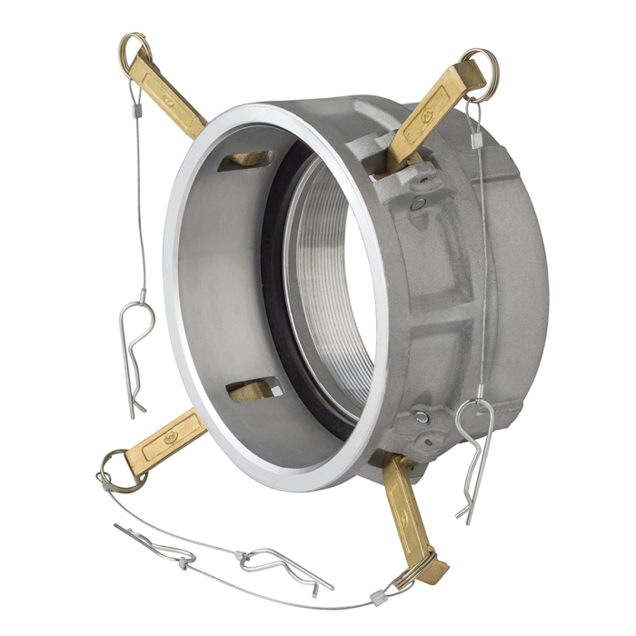 Kuriyama Heavy-Duty Quick-Acting Coupler, Connection Type 1: Type D, Gender 1: Female, Connection Size 1: 8 in, Connection Type 2: NPT, Gender 2: Female, Connection Size 2: 8 in, 50 psi, Material Construction: Aluminum, 70 deg F
