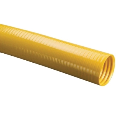 The Kuriyama Tigerflex® Flexible Banding Sleeve, Series: SLV-VAP, helps prevent over bending near the coupling of hoses. Made from yellow, non-food-grade flexible PVC, this sleeve is ideal for hoses with a low-profile and counterclockwise helix. Each sleeve can be cut into approximately 12-inch lengths and screwed onto the hose at each end, providing reliable support and durability. This product is phthalate-free, ensuring safety for various applications.
