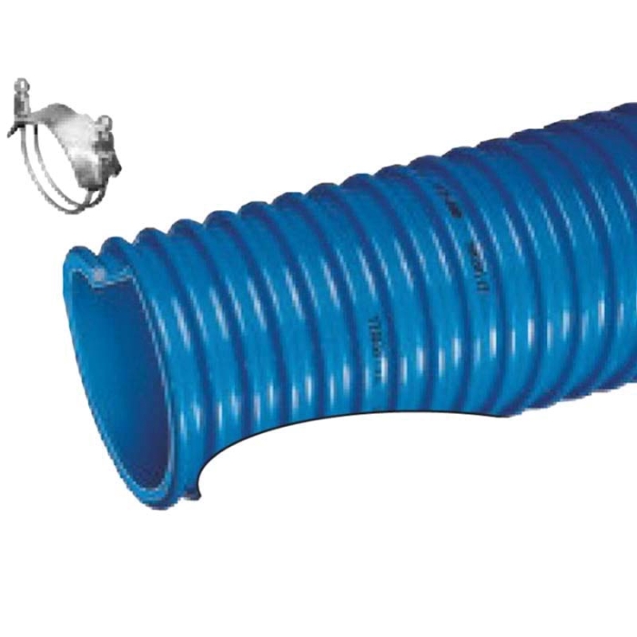 Kuriyama Tigerflex® Extra Heavy-Duty Material Handling Hose, Series: Ureflex™ UF2™, Nominal Size: 8 in, 9.18 in OD, 8 in ID, 1 ft Length, 30 psi, Material Construction: Polyurethane, PVC Cover, Construction: Polyurethane Liner and Rigid PVC Helix, Blue, 22 in Bend Radius, Resistance Properties: Abrasion, Oil, -40 deg F Low, 150 deg F High