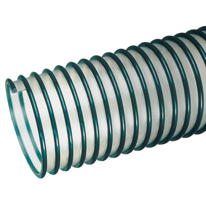 Kuriyama Tigerflex® Ducting/Material Handling Hose, Series: Urevac™ UV1™, Nominal Size: 4 in, 4-1/2 in OD, 4 in ID, 1 ft Length, 8 psi, Material Construction: Ester Polyurethane, Polyurethane Cover, Construction: Rigid PVC Helix, Transparent, 3 in Bend Radius, Resistance Properties: Oil, -40 deg F Low, 150 deg F High