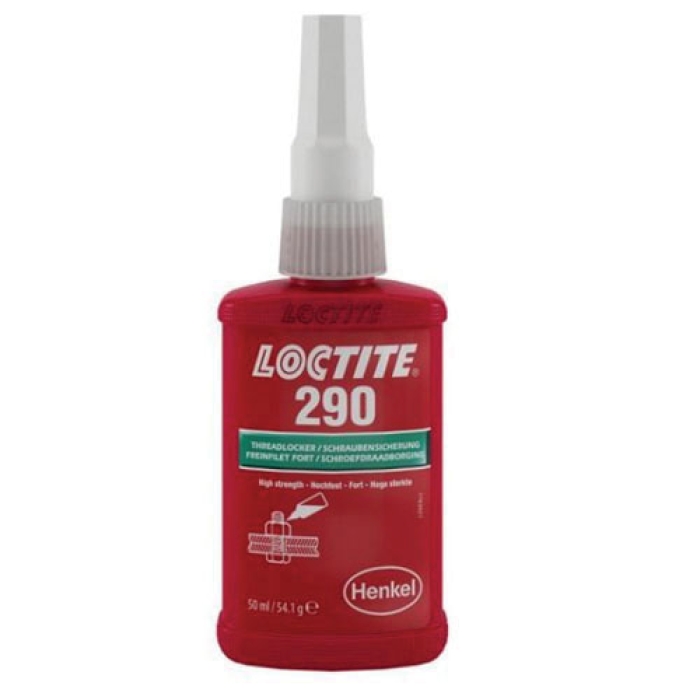 Loctite® 290™ is a medium/high-strength, wicking grade threadlocking adhesive that is ideal for locking pre-assembled fasteners. Loctite® 290™ is a liquid medium/high-strength thread locker designed for the locking and sealing of threaded fasteners. Because of its low viscosity and capillary action, the product wicks between engaged threads and eliminates the need for disassembly prior to application. The product cures when confined in the absence of air between close-fitting metal surfaces and prevents loosening and leakage due to shock and vibration. The product can also fill porosities in welds, castings and powdered metal parts.