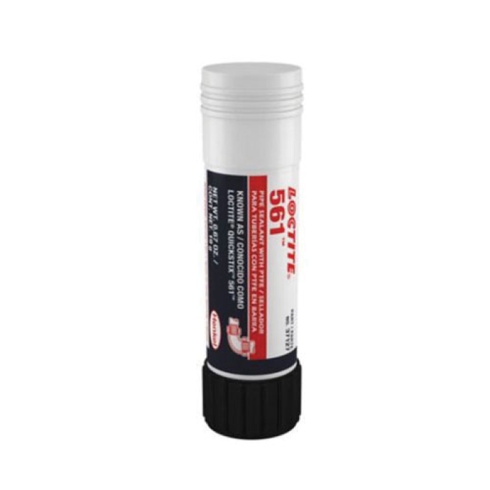 Loctite® 561™ is an white, semi-solid methacrylate thread sealant stick, an ideal toolbox product for maintenance and repair that won't spill or leak. Fast, reliable curing on metal, tapered pipe threads and fittings with a thread size up to M80/R3, its breakaway torque rating is 2 Nm. This is a low strength product for easy disassembly. Service temperature is from -55 to 150 deg C, NSF approved.