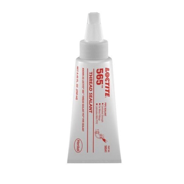 Loctite® Acrylic Thread Sealant, Series: 565™, Container Size: 1.69 oz, Container Type: Tube, Paste, White, Mild, Acrylic Base, Composition: Ethene, Tetrafluoro-, Homopolymer, Titanium Dioxide, Treated Fumed Silica, Saccharin, Cumene Hydroperoxide, Ethylene Glycol, Cumene, Curing Time: 24 hr, Specific Gravity: 1.1, Flash Point: >199.4 deg F, VOC Content: 1.06 g/L, Viscosity: 300000 mPa-s, Applicable Materials: Metal