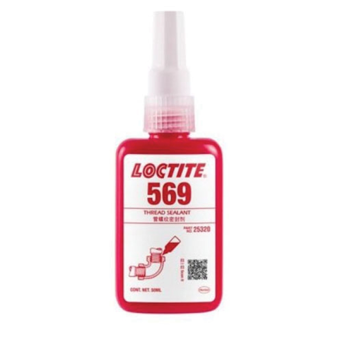 Loctite® Thread Sealant, Series: 569™, Container Size: 50 mL, Container Type: Bottle, Liquid, Brown, Mild, Acrylic Base, Composition: Polyglycol Dioctanoate, Methacrylic Acid, Isobutyl Ester, Polymer with Butyl Methacrylate, Cumene Hydroperoxide, Cumene, Curing Time: 24 hr, Specific Gravity: 1.05, Flash Point: >199.4 deg F, VOC Content: 7.74 g/L, Viscosity: 400 Mcps, -65 to 300 deg F, Applicable Materials: Plastic