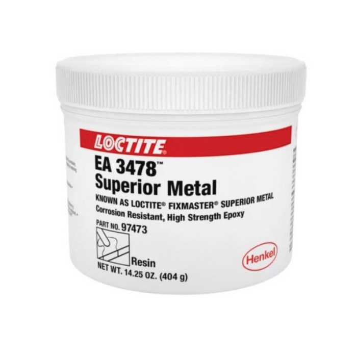 Loctite® Fixmaster® 2-Part Superior Metal Epoxy, Series: EA 3478™, Container Size: 1 lb, Container Type: Tube, Paste Part A and Part B, Gray/Dark Blue/Gray, Mild Part A, Amine-Like Part B, Composition: Part A: Reaction Mass of Iron and Iron Disilicide and Iron Silicide and Silicon, Epichlorohydrin-4,4'-Isopropylidene Diphenol Resin, Treated Fumed Silica, Setting Time: 20 min, Curing Time: 6 hr, Specific Gravity: 1.14 Part A, 1.57 Part B, Flash Point: 204 Part A, >93 Part B deg C, Mixing Ratio: 7.25:1, VOC Content: <10 Part A and Part B g/L, 250 deg F