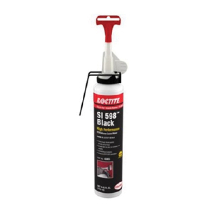 Loctite® High-Performance Gasket Maker Sealant, Series: SI 598, Container Size: 190 mL, Container Type: Aerosol Can, Paste, Black, Odorless, Composition: Limestone, Siloxanes and Silicones, Di-Me, Norflurane, Butan-2-One O, O', O'' (Vinylsilylidyne) Trioxime, Carbon Black, Aluminum, Butan-2-One O, O', O'', O''' Silanetetrayltetraoxime, Curing Time: 24 hr, Flash Point: 93 deg C, VOC Content: 3.9 %, -65 to 625 deg F, For Use With: Oil Pans, Transmission Pans, Valve Covers, Valves and Guides, Timing Gear Covers and Differential Covers