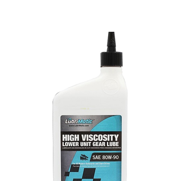 LubriMatic® Marine High-Viscosity Lower Unit Gear Lube, Container Size: 1 qt, Container Type: Bottle, Liquid, Amber, Mild Hydrocarbon, Composition: Residual Oils (Petroleum) Solvent-Refined, Distillates (Petroleum) Solvent-Dewaxed Heavy Paraffinic, Phosphoric Acid Esters/Amine Salts, Olefin Sulfide, Specific Gravity: 0.8911, Flash Point: >302 deg F, Viscosity: 14.7 cSt, Packaging Quantity: 12 PK
