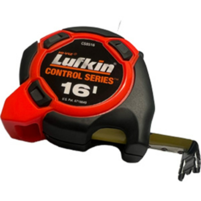 Lufkin Measuring Tape, Series: 800, Manual/Powered: Powered, Measuring System: SAE, Graduations: 1/16ths, First 12 in to 1/32nds, 16 ft Length Blade, 3/4 in Width Blade, Blade Material: Steel, Markings: Black and Red on One Side, Standout: 10 ft, Rewind Type: Power Return, Toggle Locking, Case Type: Round, Finish: Clear-Coat, Hi-Viz Orange/Yellow