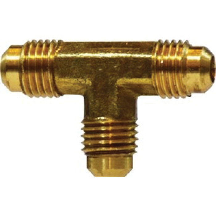 MIDLAND INDUSTRIES Union Tee, Connection Type 1: SAE 45 deg Flare, Gender 1: Male, Connection Size 1: 3/4 in, Connection Type 2: SAE 45 deg Flare, Gender 2: Male, Connection Size 2: 3/4 in, Connection Type 3: SAE 45 deg Flare, Gender 3: Male, Connection Size 3: 3/4 in, 550 psi, Material Construction: Forged Brass, For Use With: Copper, Brass, Aluminum, and Steel Hydraulic Tubing that can be Flared, Dimensions: 3.28 in L, Dimension Standards: SAE 010401, -65 to 250 deg F