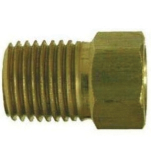 MIDLAND INDUSTRIES Straight Adapter, 1.32 in Length, Connection Type 1: Inverted Flare, Connection Size 1: 5/8 in, Connection Type 2: FNPTF, Connection Size 2: 1/2 in, Material Construction: Brass, For Use With: Copper, Brass, Aluminum, and Steel Hydraulic Tubing that can be Flared, -65 to 250 deg F, Hex Size: 1.065 in