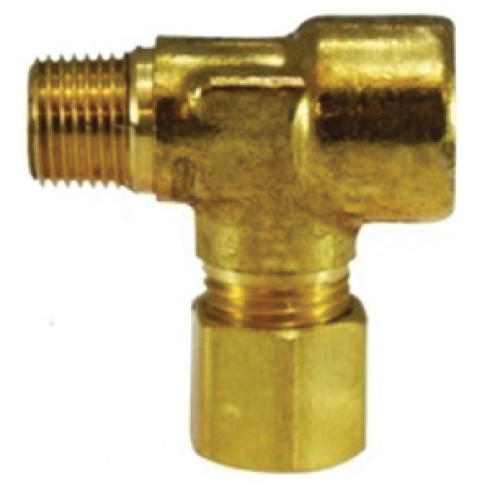 MIDLAND INDUSTRIES Adapter Tee, Connection Type 1: NPTF, Gender 1: Male, Connection Size 1: 1/4 in, Connection Type 2: NPTF, Gender 2: Female, Connection Size 2: 1/4 in, Connection Type 3: Compression, Connection Size 3: 1/8 in, 300 psi, Material Construction: Brass, For Use With: Aluminum, Copper, Brass, and Plastic Tubing, Dimensions: 1-1/4 in L, 73 deg F
