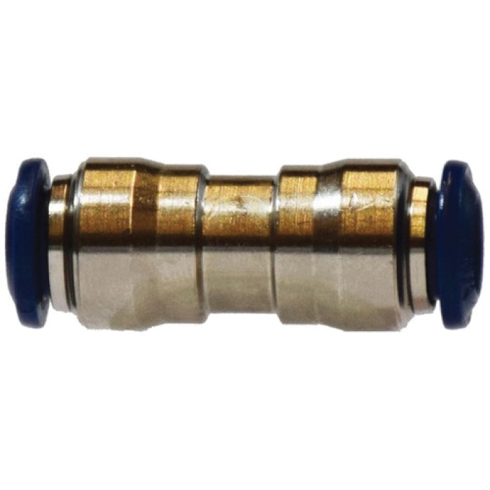 MIDLAND INDUSTRIES Union Connector, Connection Type 1: Push-to-Connect, Connection Size 1: 5/16 in, Connection Type 2: Push-to-Connect, Connection Size 2: 5/16 in, 290 psi, Material Construction: Brass, Finish: Nickel-Plated, Dimensions: 1.46 in L x 0.57 in W, -4 to 176 deg F, For Use With: Nylon, Polyethylene, and Polyurethane Tubing