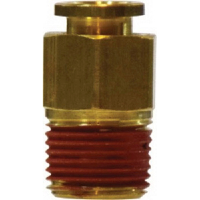 MIDLAND INDUSTRIES Straight Connector with Gaskets, Connection Type 1: Push-to-Connect, Connection Size 1: 3/16 in, Connection Type 2: NPTF, Gender 2: Male, Connection Size 2: 10-32, Hex Size: 0.37 in, 290 psi, Material Construction: Brass, -10 to 200 deg F