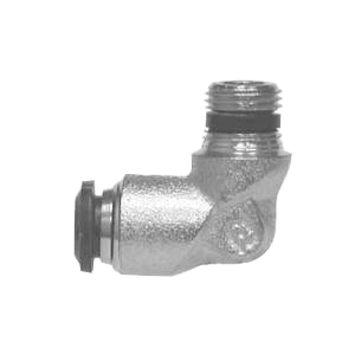 MIDLAND INDUSTRIES 90 deg Elbow, Connection Type 1: Push-to-Connect, Connection Size 1: 1/4 in, Connection Type 2: NPTF, Gender 2: Male, Connection Size 2: 1/4 in, 290 psi, Material Construction: Brass, Finish: Nickel-Plated, -4 to 176 deg F, For Use With: Nylon, Polyethylene, and Polyurethane Tubing