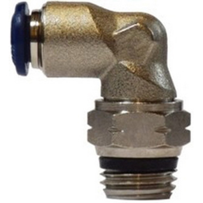MIDLAND INDUSTRIES 90 deg Elbow, Connection Type 1: Push-to-Connect, Connection Size 1: 1/2 in, Connection Type 2: NPT Swivel, Gender 2: Male, Connection Size 2: 1/4 in, Hex Size: 0.59 in, 290 psi, Material Construction: Brass, Finish: Nickel-Plated, -4 to 176 deg F, For Use With: Nylon, Polyethylene, and Polyurethane Tubing