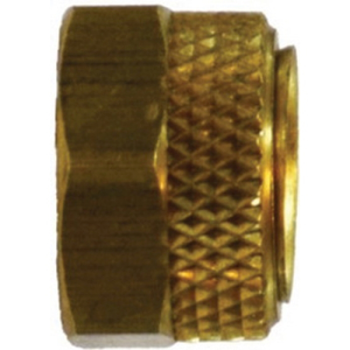 MIDLAND INDUSTRIES Universal Nut and Sleeve Assembly, Connection Type 1: Tube, Connection Size 1: 3/16 in, Thread Size 1: 3/8-24, Hex Size: 0.44 in, Material Construction: Brass, Dimensions: 0.41 in L, -65 to 250 deg F, For Use With: Aluminum and Copper Tubing