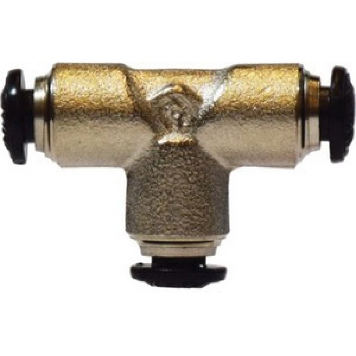 MIDLAND INDUSTRIES Union Tee, Connection Type 1: Push-to-Connect, Connection Size 1: 10 mm, Connection Type 2: Push-to-Connect, Connection Size 2: 10 mm, Connection Type 3: Push-to-Connect, Connection Size 3: 10 mm, 290 psi, Material Construction: Brass, Finish: Nickel-Plated, Dimensions: 2.067 in L, -4 to 176 deg F, For Use With: Nylon, Polyethylene, and Polyurethane Tubing