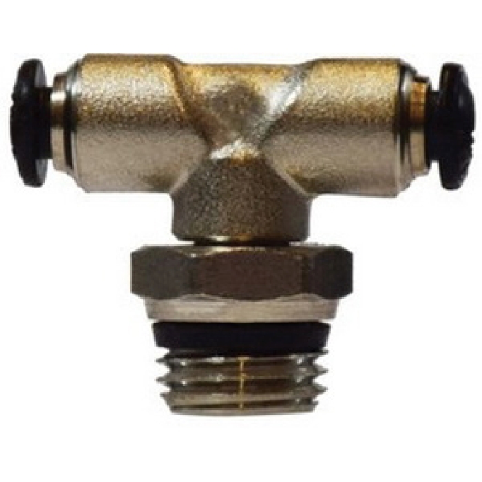MIDLAND INDUSTRIES Tee, Connection Type 1: Push-to-Connect, Connection Size 1: 12 mm, Connection Type 2: Push-to-Connect, Connection Size 2: 12 mm, Connection Type 3: NPT, Gender 3: Male, Connection Size 3: 3/8 in, Hex Size: 0.663 in, 290 psi, Material Construction: Brass, Finish: Nickel-Plated, -4 to 176 deg F, For Use With: Nylon, Polyethylene, and Polyurethane Tubing