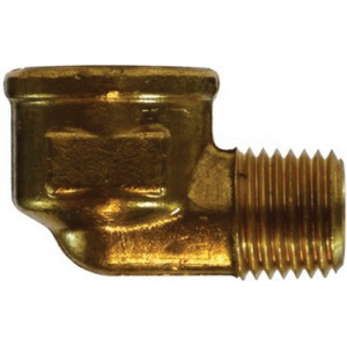 MIDLAND INDUSTRIES 90 deg Reducing Street Elbow, Connection Type 1: NPTF, Gender 1: Female, Connection Size 1: 3/8 in, Thread Size 1: 3/8-18, Connection Type 2: NPTF, Gender 2: Male, Connection Size 2: 1/4 in, Thread Size 2: 1/4-18, 1200 psi, Material Construction: Forged Brass, For Use With: Brass, Bronze, Copper, Steel, Aluminum, and Iron Pipe, -65 to 250 deg F