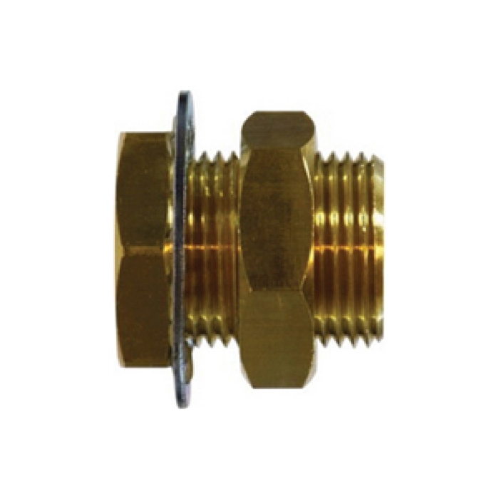MIDLAND INDUSTRIES Bulkhead Anchor Coupling, Connection Type 1: NPTF, Gender 1: Female, Connection Size 1: 3/4 in, Thread Size 1: 3/4-14, Connection Type 2: NPT, Gender 2: Female, Connection Size 2: 1-5/16 in, Thread Size 2: 1-5/16-12, Material Construction: Brass, 1-1/2 in Length