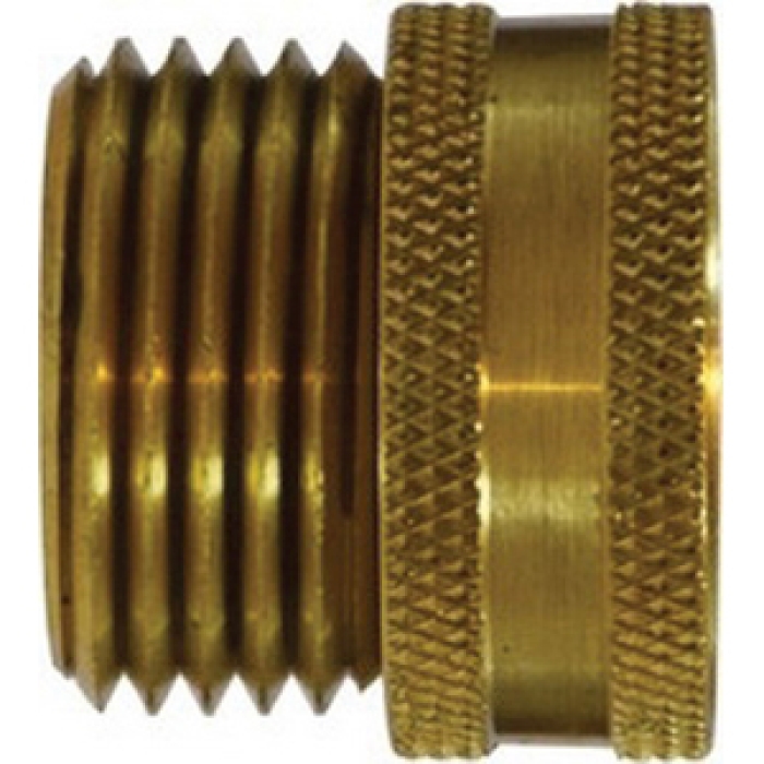 MIDLAND INDUSTRIES Adapter, Connection Type 1: GHT Swivel, Gender 1: Male, Connection Size 1: 3/4 in, Connection Type 2: GHT Swivel, Gender 2: Female, Connection Size 2: 3/4 in, Hex Size: 1/2 in, Material Construction: Brass, Dimensions: 1.03 in L, 35 - 100 deg F