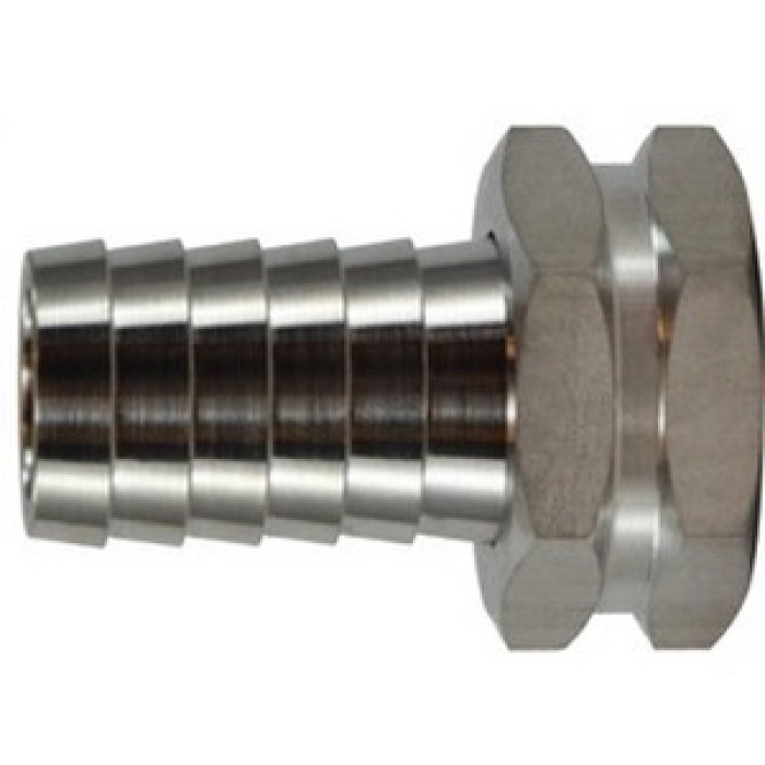 MIDLAND INDUSTRIES 30034SS Stainless Steel Barstock Coupling, 3/4 in Hose Barb x 3/4 in FGHT Swivel