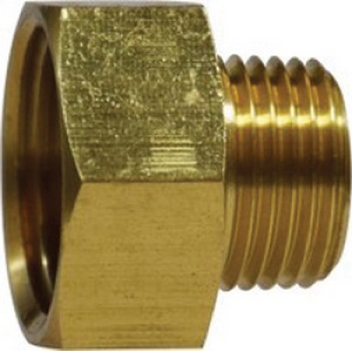 MIDLAND INDUSTRIES Rigid Adapter, Connection Type 1: GHT, Gender 1: Female, Connection Size 1: 3/4 in, Connection Type 2: NPTF, Gender 2: Male, Connection Size 2: 1/2 in, Hex Size: 1.18 in, Material Construction: Brass, Dimensions: 1.06 in L, 35 - 100 deg F