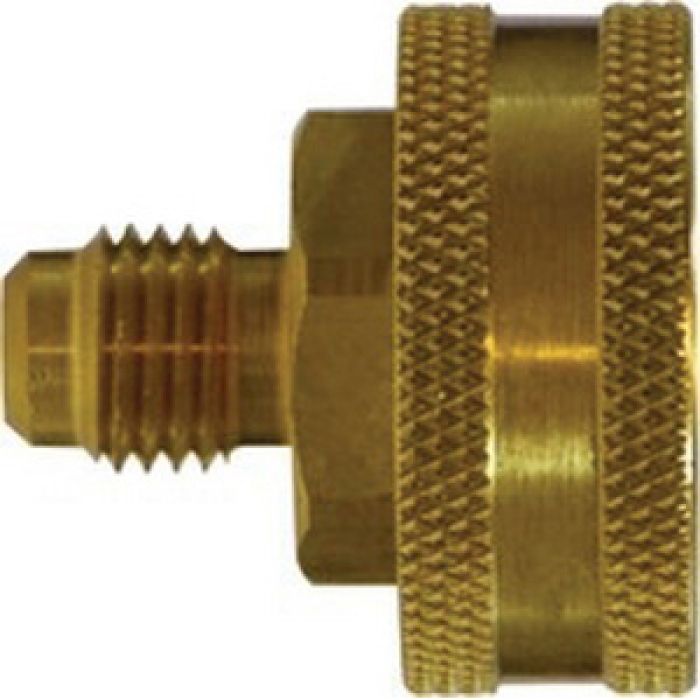 MIDLAND INDUSTRIES Adapter, Connection Type 1: Flare, Gender 1: Male, Connection Size 1: 1/2 in, Connection Type 2: GHT, Gender 2: Female, Connection Size 2: 3/4 in, Hex Size: 0.81 in, Material Construction: Brass, Dimensions: 1.49 in L, 35 - 100 deg F
