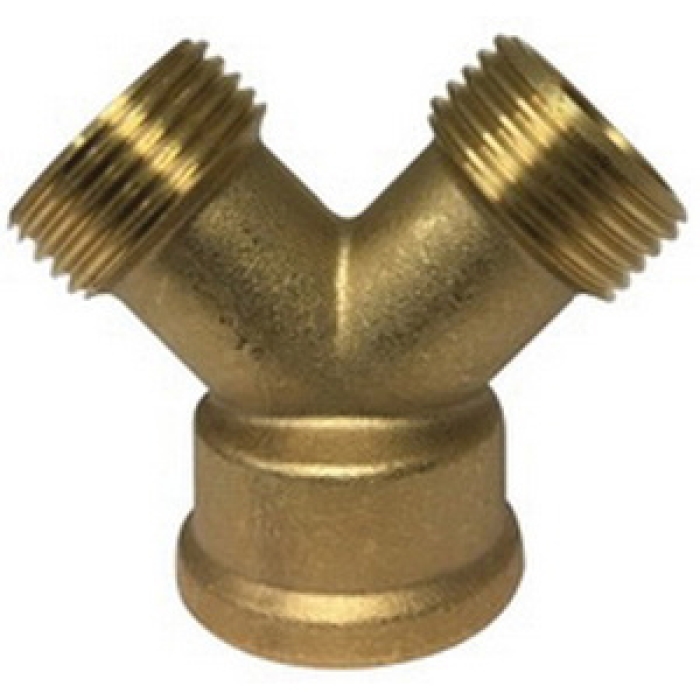 MIDLAND INDUSTRIES Y Connector, Connection Type 1: GHT, Gender 1: Female, Connection Size 1: 3/4 in, Connection Type 2: GHT, Gender 2: Male, Connection Size 2: 3/4 in, Connection Type 3: GHT, Gender 3: Male, Hex Size: 1.18 in, 75 psi, Material Construction: Cast Brass, 35 - 100 deg F