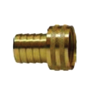 MIDLAND INDUSTRIES Short Shank Knurled Nut, Connection Type 1: Hose Barb, Connection Size 1: 1/4 in, Connection Type 2: GHT Swivel, Gender 2: Female, Connection Size 2: 3/4 in, 75 psi, Material Construction: Brass, 1.39 in Length, 35 - 100 deg F