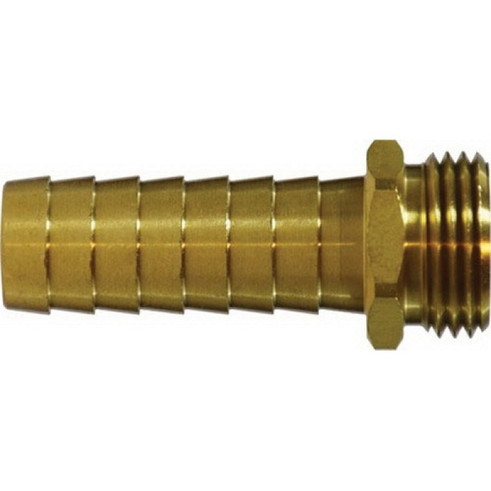 MIDLAND INDUSTRIES Adapter, Connection Type 1: Hose Barb, Connection Size 1: 3/4 in, Connection Type 2: GHT Swivel, Gender 2: Male, Connection Size 2: 3/4 in, Hex Size: 1.06 in, Material Construction: Brass, Dimensions: 2 in Shank x 2.72 in L, 35 - 100 deg F