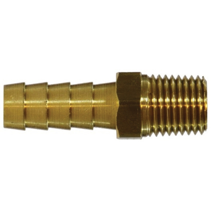 MIDLAND INDUSTRIES Rigid Straight Adapter, Connection Type 1: Hose Barb, Connection Size 1: 3/16 in, Connection Type 2: NPT, Gender 2: Male, Connection Size 2: 1/8 in, Hex Size: 0.43 in, 150 psi, Material Construction: Brass, For Use With: Hose Clamp, Similar Type Clamp or a Crimped Ferrule, Dimensions: 1.19 in L, -40 to 160 deg F