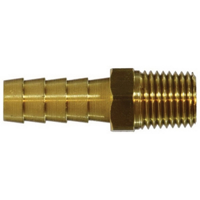 MIDLAND INDUSTRIES Rigid Adapter, Connection Type 1: Hose Barb, Connection Size 1: 1-1/4 in, Connection Type 2: NPTF, Gender 2: Male, Connection Size 2: 1 in, Hex Size: 1.37 in, Material Construction: Brass, For Use With: Hose Clamp, Similar Type Clamp or a Crimped Ferrule, Dimensions: 2.55 in L, -40 to 160 deg F
