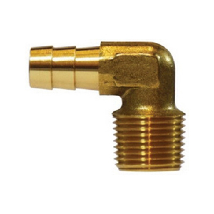 MIDLAND INDUSTRIES Rigid 90 deg Elbow, Connection Type 1: Hose Barb, Connection Size 1: 1/2 in, Connection Type 2: NPTF, Gender 2: Male, Connection Size 2: 3/8 in, 150 psi, Material Construction: Forged Brass, For Use With: Hose Clamp, Similar Type Clamp or a Crimped Ferrule, -40 to 160 deg F