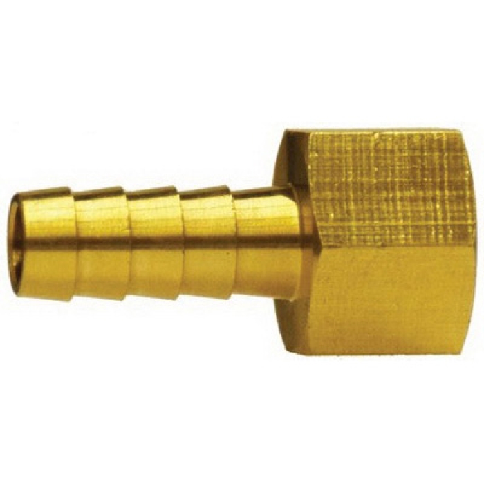 MIDLAND INDUSTRIES Rigid Adapter, Connection Type 1: Hose Barb, Connection Size 1: 5/16 in, Connection Type 2: NPTF, Gender 2: Female, Connection Size 2: 3/8 in, Hex Size: 3/4 in, Material Construction: Brass, For Use With: Hose Clamp, Similar Type Clamp or a Crimped Ferrule, Dimensions: 1.66 in L, -40 to 160 deg F