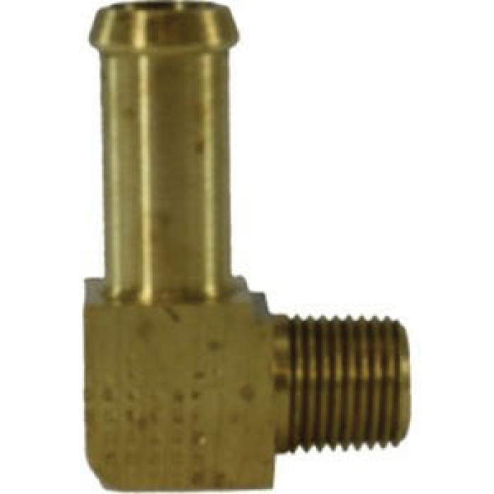 MIDLAND INDUSTRIES 90 deg Elbow, Connection Type 1: Hose Barb, Connection Size 1: 1/4 in, Connection Type 2: IPT, Gender 2: Male, Connection Size 2: 1/8 in, Material Construction: Brass, For Use With: SAE 30R7 and SAE 30R9 Fuel Hoses