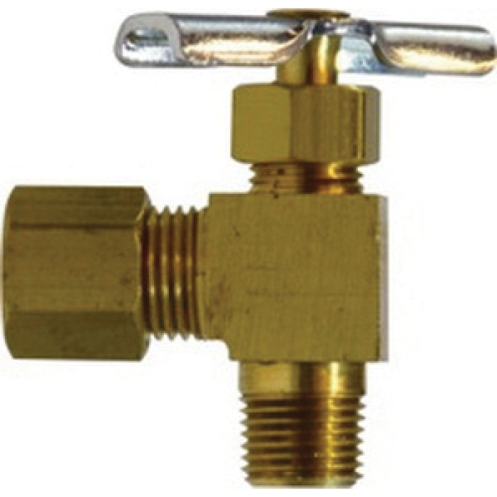 MIDLAND INDUSTRIES 46013 Brass 90 deg Needle Valve, 5/16 x 1/8 in Compression Tube x MNPT, 150 psi