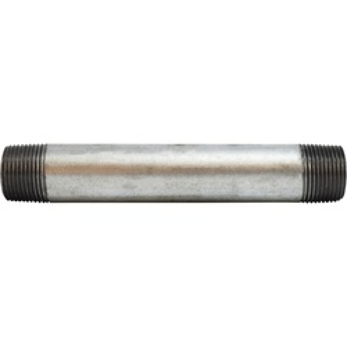 MIDLAND INDUSTRIES Welded Pipe Nipple, Nipple Fitting, 3/4 in Connection Size 1, Connection Type 1: MPT, 3/4 in Connection Size 2, Connection Type 2: MPT, MPT|MPT Connection, 12 in Length, 3/4 in Diameter, Steel, Material Construction: Steel, Finish: Galvanized, 0.79 in Thread Length, 0.113 in Wall Thickness, SCH 40, 700 psi, Dimension Standards: ANSI B1.20.1, -150 to 200 deg F