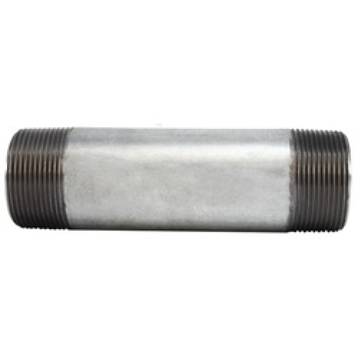 MIDLAND INDUSTRIES Welded Pipe Nipple, Nipple Fitting, 1-1/2 in Connection Size 1, Connection Type 1: MPT, 1-1/2 in Connection Size 2, Connection Type 2: MPT, MPT|MPT Connection, 10 in Length, 1-1/2 in Diameter, Steel, Material Construction: Steel, Finish: Galvanized, 1.03 in Thread Length, 0.145 in Wall Thickness, SCH 40, 1300 psi, Dimension Standards: ANSI B1.20.1, -150 to 200 deg F
