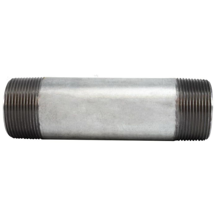 MIDLAND INDUSTRIES Welded Pipe Nipple, Nipple Fitting, 1-1/2 in Connection Size 1, Connection Type 1: MPT, 1-1/2 in Connection Size 2, Connection Type 2: MPT, MPT|MPT Connection, 12 in Length, 1-1/2 in Diameter, Steel, Material Construction: Steel, Finish: Galvanized, 1.03 in Thread Length, 0.145 in Wall Thickness, SCH 40, 1300 psi, Dimension Standards: ANSI B1.20.1, -150 to 200 deg F