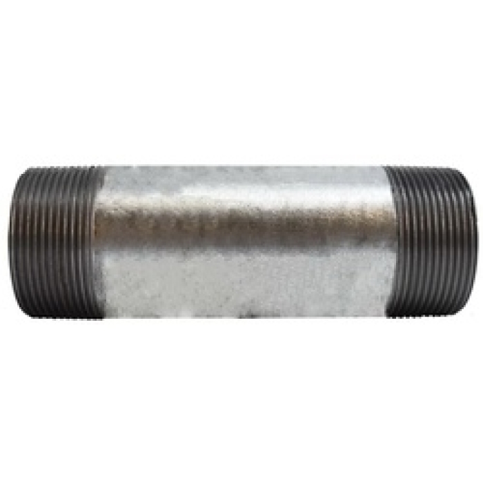 MIDLAND INDUSTRIES Welded Pipe Nipple, Nipple Fitting, 2-1/2 in Connection Size 1, Connection Type 1: MPT, 2-1/2 in Connection Size 2, Connection Type 2: MPT, MPT|MPT Connection, 12 in Length, 2-1/2 in Diameter, Steel, Material Construction: Steel, Finish: Galvanized, 1.57 in Thread Length, 0.203 in Wall Thickness, SCH 40, 2500 psi, Dimension Standards: ANSI B1.20.1, -150 to 200 deg F