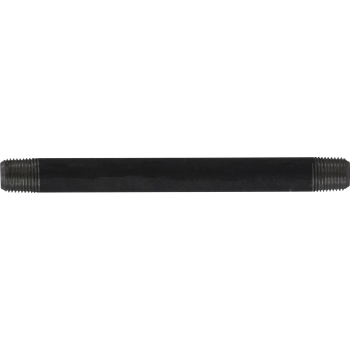 MIDLAND INDUSTRIES Grade B Welded Nipple, Connection Type 1: NPT, Gender 1: Male, Connection Size 1: 1/8 in, Thread Size 1: 1/8-27, Connection Type 2: NPT, Gender 2: Male, Connection Size 2: 1/8 in, Thread Size 2: 1/8-27, SCH 40, 0.068 in Thick Wall, 700 psi, Material Construction: Steel, Black, 7 in Length, 0.39 in Length Thread, Dimension Standards: ANSI B1.20.1, -200 to 150 deg C