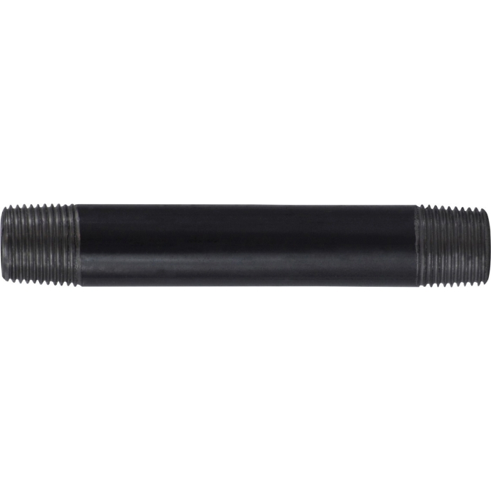 MIDLAND INDUSTRIES Grade B Welded Nipple, Connection Type 1: NPT, Gender 1: Male, Connection Size 1: 3/8 in, Connection Type 2: NPT, Gender 2: Male, Connection Size 2: 3/8 in, SCH 40, 0.091 in Thick Wall, 700 psi, Material Construction: Steel, Black, 6 in Length, 0.6 in Length Thread, Dimension Standards: ANSI B1.20.1, -200 to 150 deg C