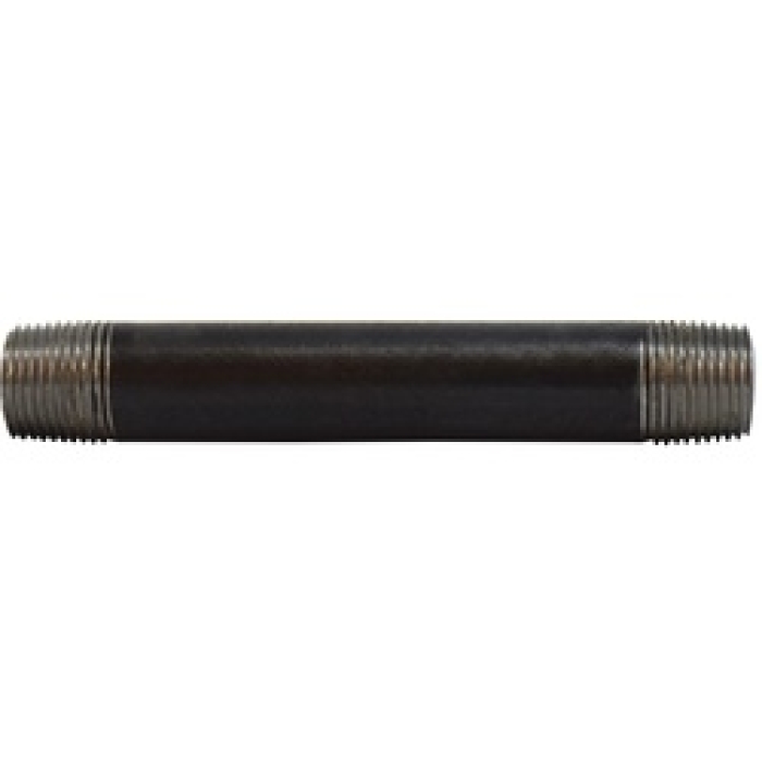 MIDLAND INDUSTRIES Seamless Pipe Nipple, Nipple Fitting, 3/8 in Connection Size 1, Connection Type 1: MPT, 3/8 in Connection Size 2, Connection Type 2: MPT, MPT|MPT Connection, 2-1/2 in Length, 3/8 in Diameter, Steel, Material Construction: Steel, Black, 3/8-18 Thread, 0.6 in Thread Length, 0.126 in Wall Thickness, SCH 80, Pressure Class: 300 lb, 850 psi, Dimension Standards: ANSI B1.20.1, -200 to 150 deg F